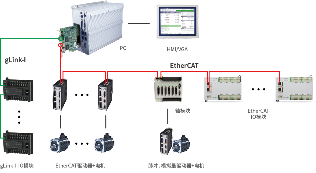 ● 兩種IO連接方式:EtherCAT和gLink-I