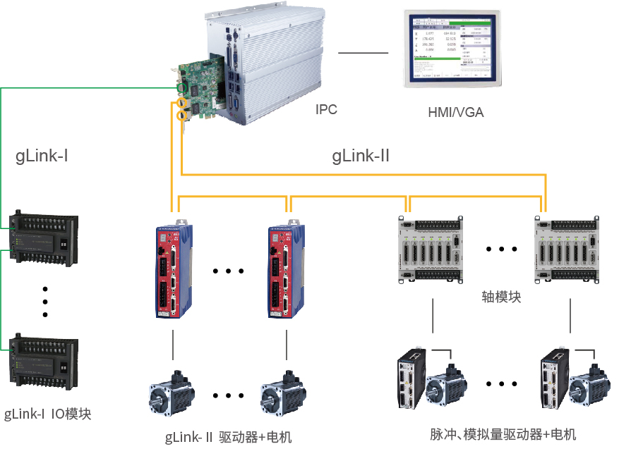GSN系列高性能多軸網(wǎng)絡運動控制器是一款網(wǎng)絡型、模塊化的插卡式運動控制器??刂破髦骺▽崿F(xiàn)運動控制計算,它通過gLink-II 總線連接固高自主開發(fā)的gLink-II 驅動器和軸控模塊,客戶可以根據(jù)自身需求,選擇gLink-II 驅動器或不同類型的軸控模塊(4軸模塊、6軸模塊),快速搭建高性能運動控制系統(tǒng),實現(xiàn)分布式現(xiàn)場運動控制和控制系統(tǒng)柔性化。