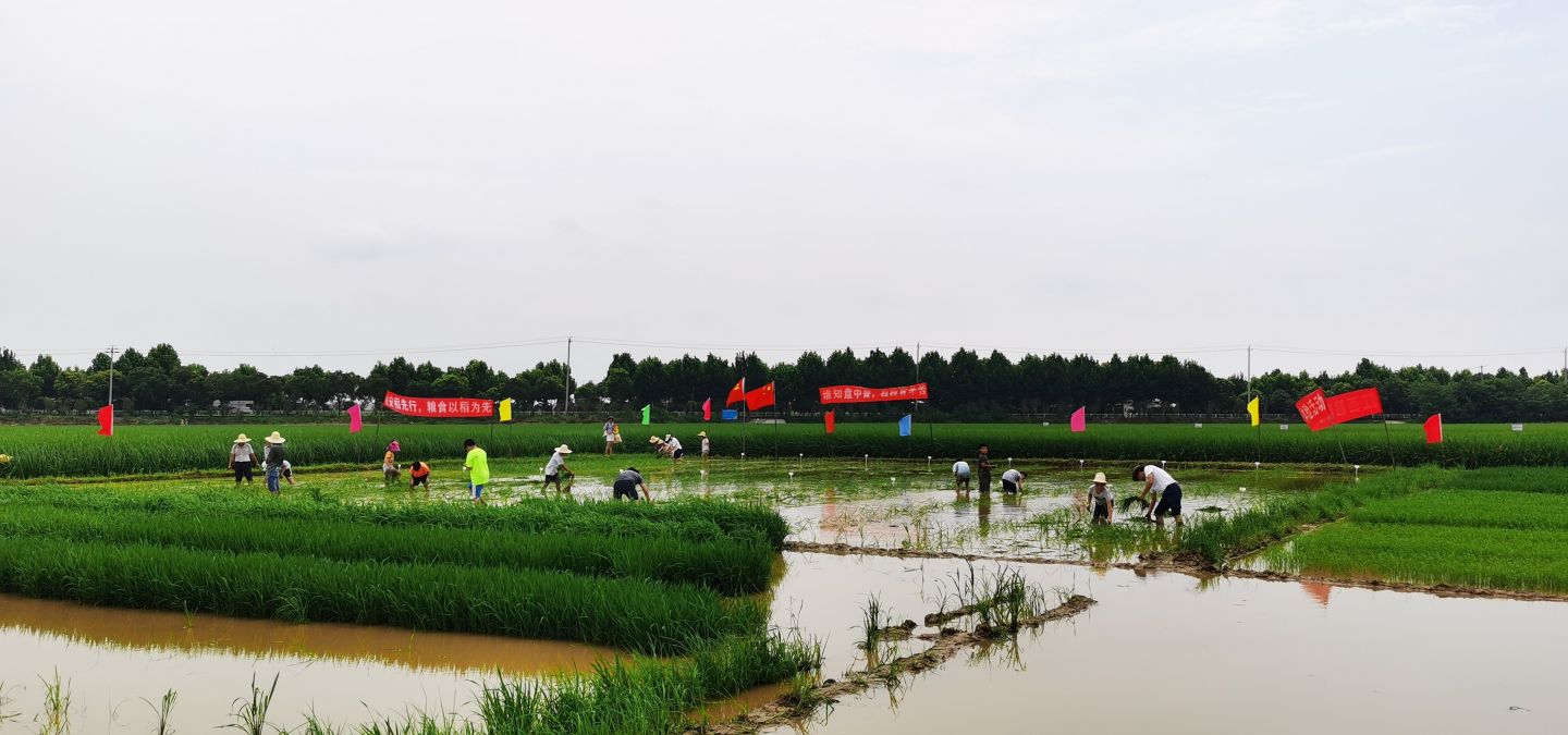 上午9點(diǎn)整,活動(dòng)開始,先由江西贛糧院士工作站藍(lán)海軍副主任向大家介紹基地情況,然后帶著大家來到科普區(qū),一一介紹了正在展示的各種顏色和形狀的30多種特種稻,并隆重介紹了基地工作人員以稻為筆,“繪制”的黨旗等彩色稻圖案為百年建黨節(jié)獻(xiàn)禮。然后,來到基地正在實(shí)施的“無人農(nóng)場(chǎng)”項(xiàng)目區(qū),介紹了無人農(nóng)場(chǎng)的運(yùn)行過程和智慧農(nóng)業(yè)實(shí)施應(yīng)用情況。隨后藍(lán)海軍副主任拿起了一個(gè)基地正在使用的生物植保器具“二化螟性誘器”為大家講解它的捕蟲原理。接著,又通過圖片給大家上了一節(jié)關(guān)于我國農(nóng)耕文化發(fā)展過程的科普教育課。最后,孩子們?cè)诨貓?chǎng)長劉平洲的帶領(lǐng)下整齊有序地排成隊(duì)伍來到一塊水田旁,像快樂的小鴨子一樣一個(gè)個(gè)走下田去,手沾土,腳踩泥,與農(nóng)田親密接觸。在技術(shù)人員的指導(dǎo)下他們先完成拔秧的工序,然后把自己拔的秧又一棵棵整齊有序地栽插到屬于自己的小田塊里。“株距大約18厘米,行距大約20厘米。左手握秧,右手捏兩株左右秧苗往泥里插,不能太深也不能太淺......”不等劉平洲場(chǎng)長“崗前培訓(xùn)”完,孩子們迫不及待地插起田來。認(rèn)真程度不亞于農(nóng)民伯伯。不一會(huì)兒就完成了一大半。個(gè)別小朋友在水田中寸步難行,甚至一度重心失衡,一屁股坐在水田里,惹得大家發(fā)出一陣陣愉快的笑聲。