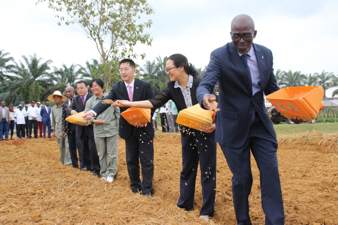 在活動中,亓玫大使、阿卡波部長,中國駐巴塔總領(lǐng)事徐莊聲以及中國駐赤幾使館經(jīng)商處參贊蘇建國等親自播種象征“美好希望”的水稻種子,收獲“中赤友誼豐收”的稻谷。中赤雙方共同在赤道幾內(nèi)亞示范農(nóng)場播種希望,贏得了圍觀群眾的陣陣喝彩。